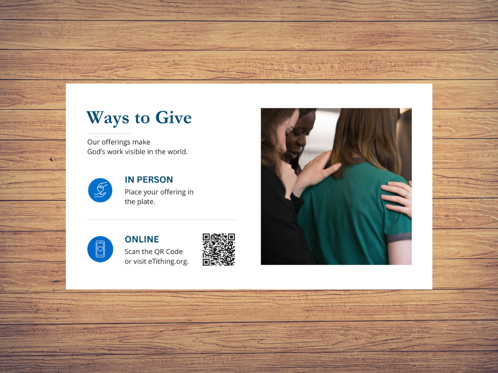 You may give through the website at CofChrist.org/give, by scanning the QR code on screen, or by placing your offering in the plate.